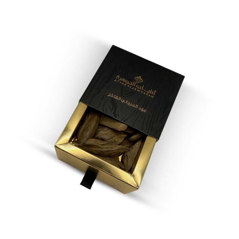 - يتميز العود المروكي الفاخر بأنه من أعلى درجات العود الطبيعي المحسن، حيث يتم انتقاؤه بعناية فائقة لضمان رائحة غنية وثبات يدوم طويلاً.